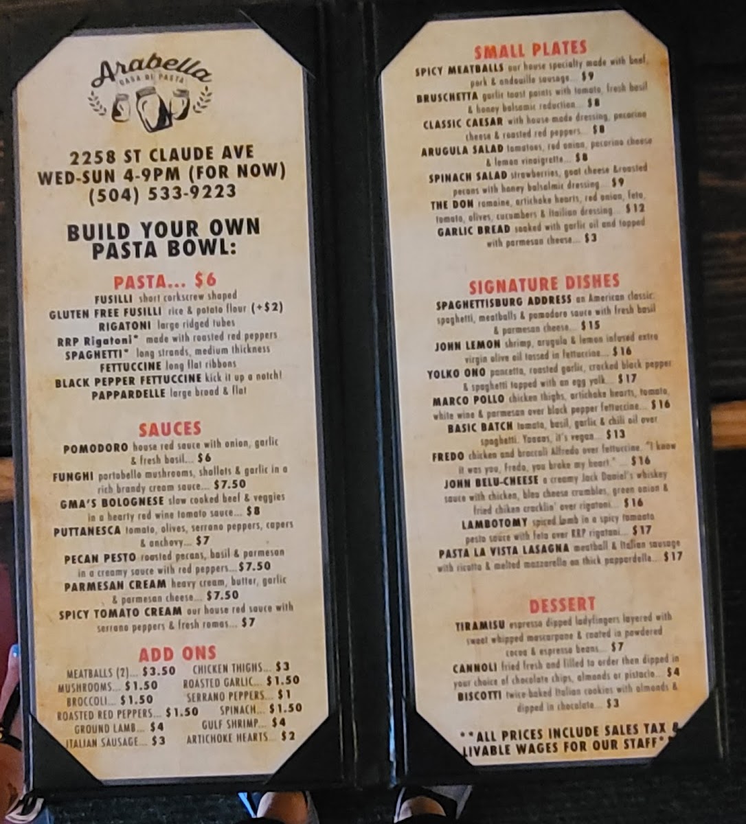 Welcome to Arabella Casa Di Pasta, a delightful gem nestled in New Orleans. This innovative eatery merges traditional Italian flavors with a unique atmosphere, enhanced by a playful Star Wars theme. Their menu shines particularly with the customizable pasta options, featuring hearty sauces like Grandma's Bolognese and Pecan Pesto, allowing diners to craft a personal culinary experience.
